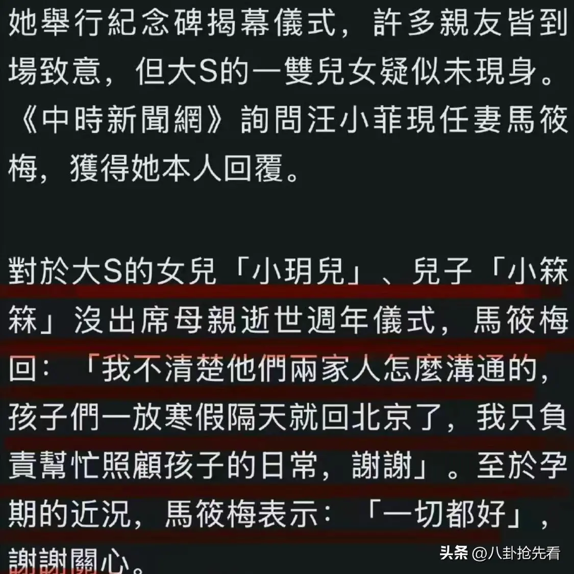 曝光她去世的真相,除此之外,大家关心的两个孩子没有参加一周年这件事,筱梅也出来回应了。