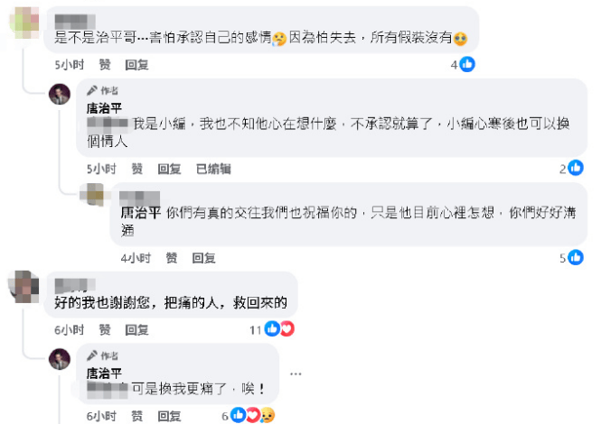 近日,唐治平官宣复出,谈及感情状态时他透露自己目前是单身。但2月4日,唐治平社交平台账号的小编却突然发布两人亲密合照,并公开指责唐治平否认恋情的行为“伤透人心&rdqu