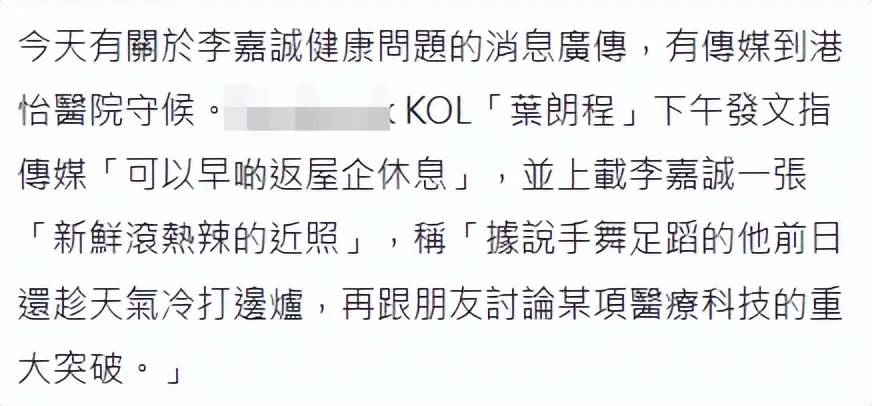 2月3日,网传李嘉诚健康出现问题,疑似病重入院救治。甚至在医院门口有不少媒体守着,希望能拍到最新的进展。