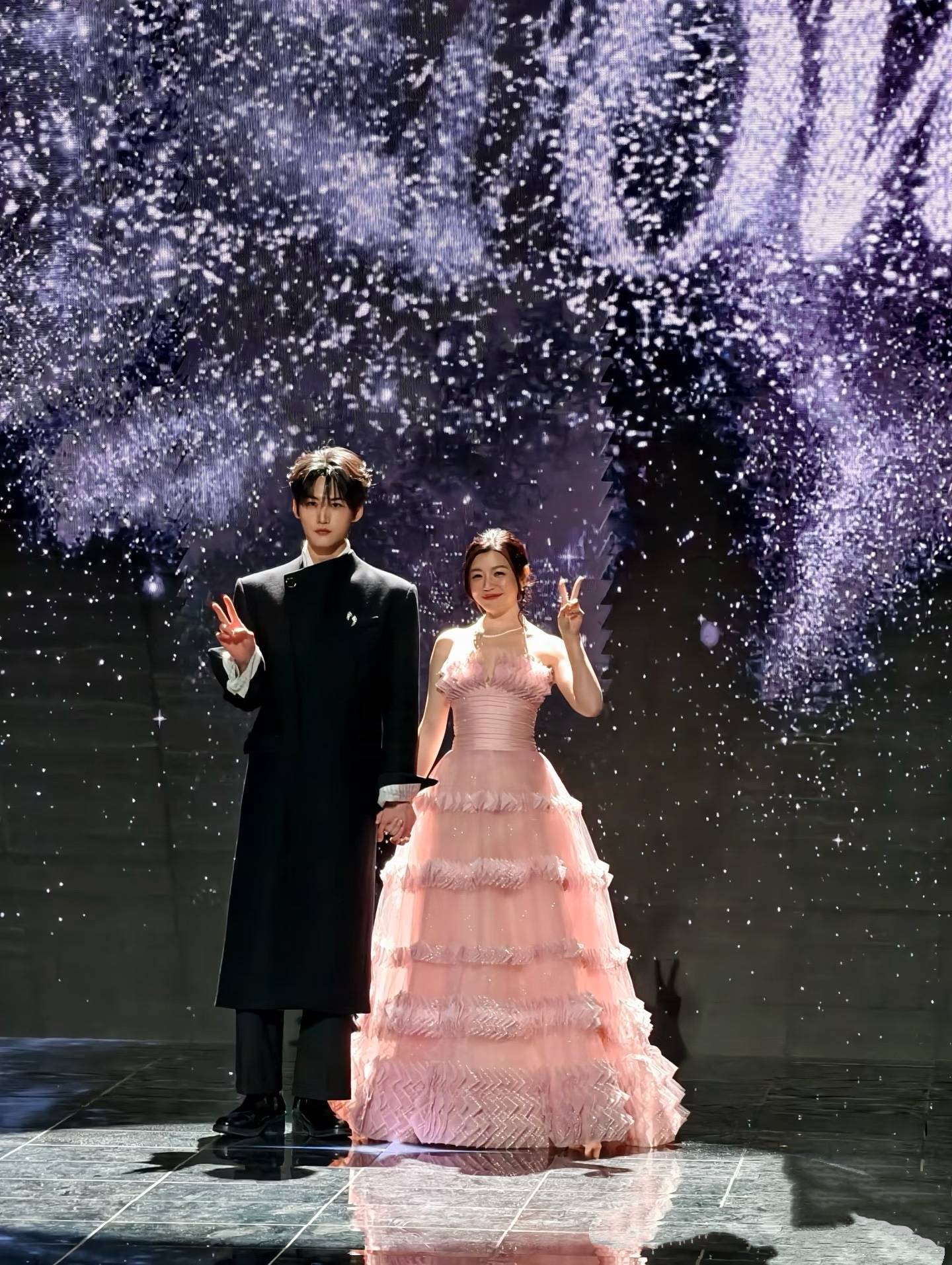 陈妍希和周柯宇这对年下CP也来撒糖了,陈妍希穿着粉色蛋糕裙格外甜美,完全不像40+的女人。