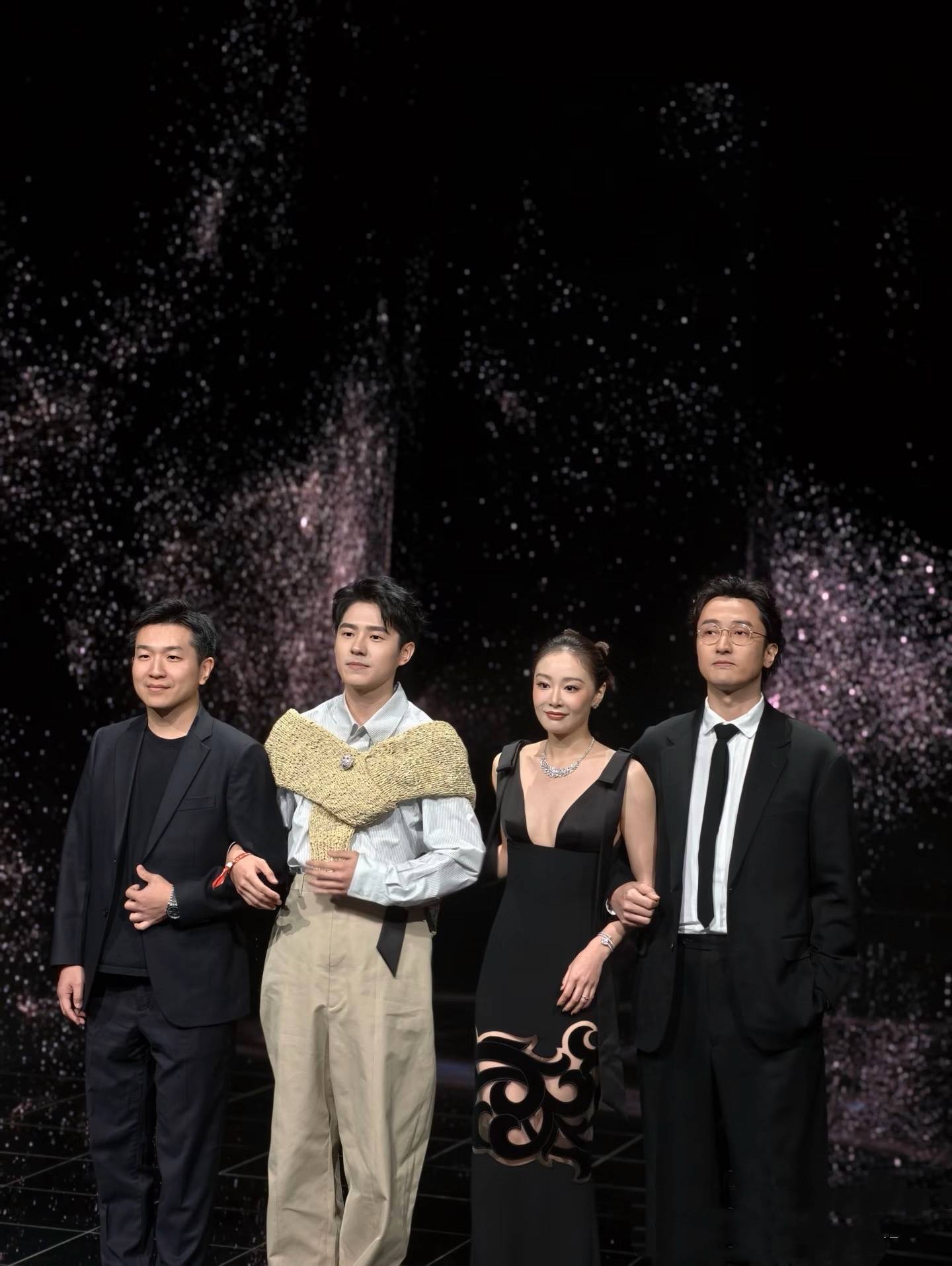 南京照相馆主创团队,高叶穿着黑色长裙,V领设计比较霸气,整体有一种很强势的美。