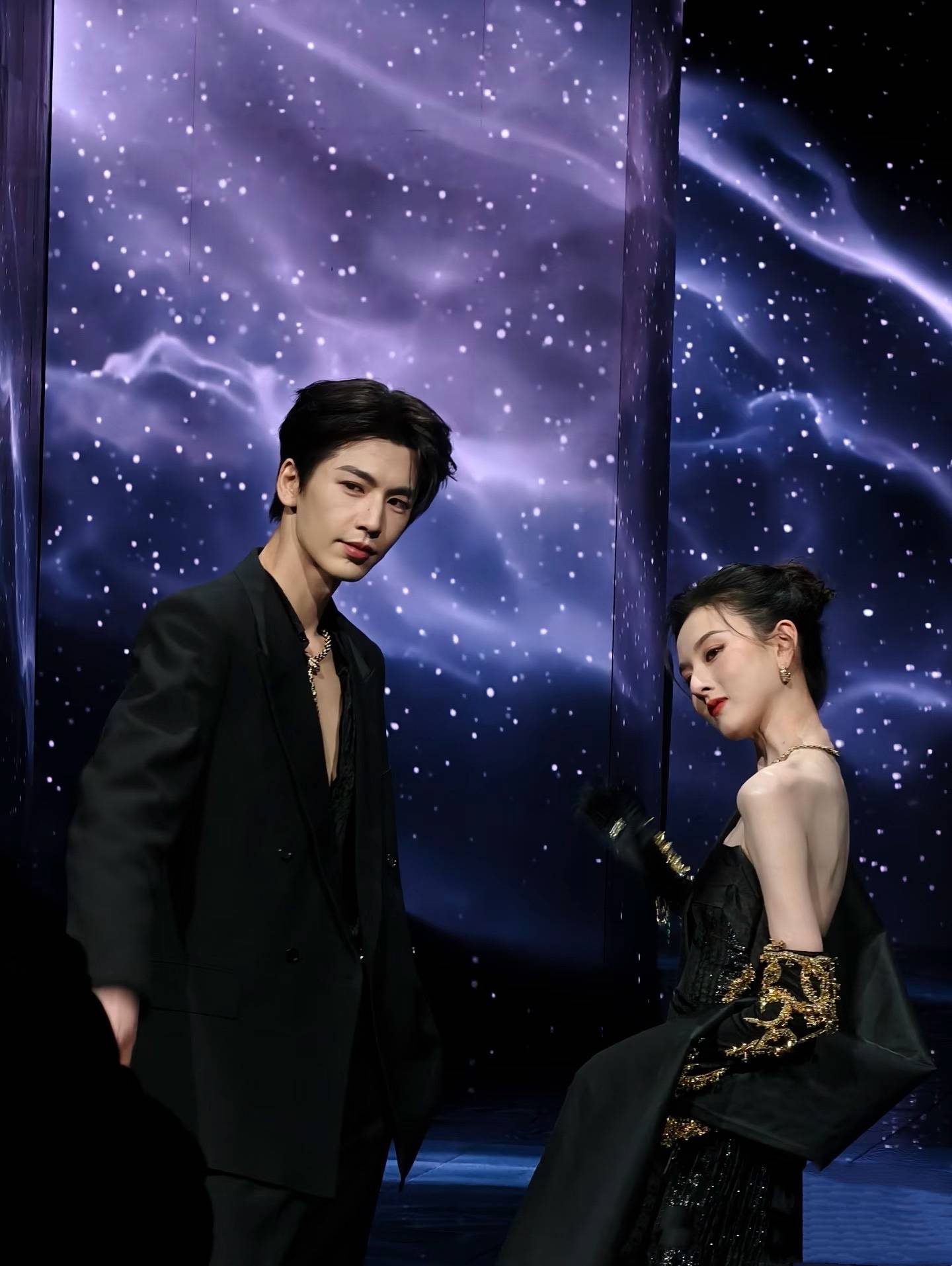 张凌赫宋祖儿,两人同穿黑衣,只不过看起来俩人不是很搭。