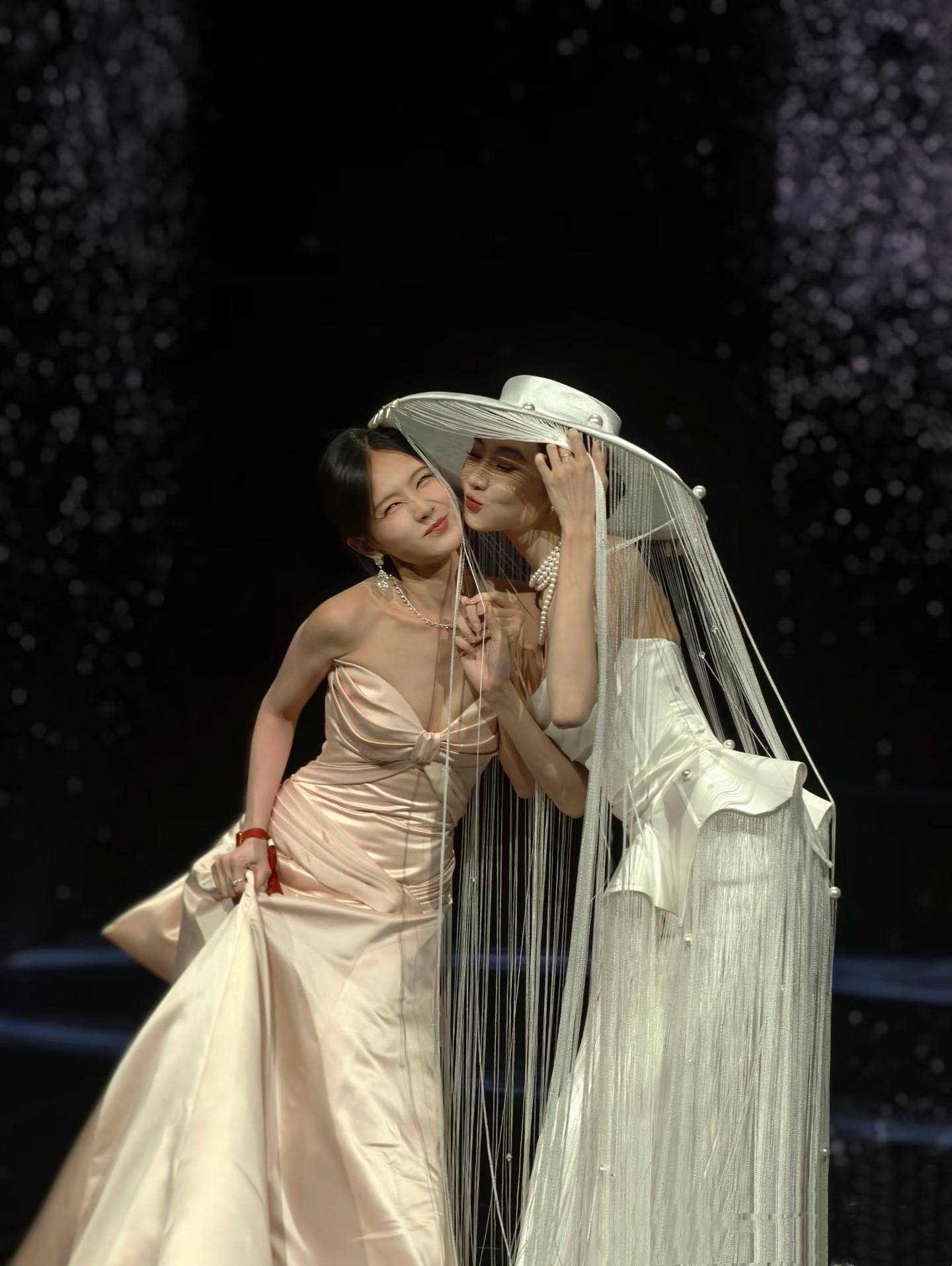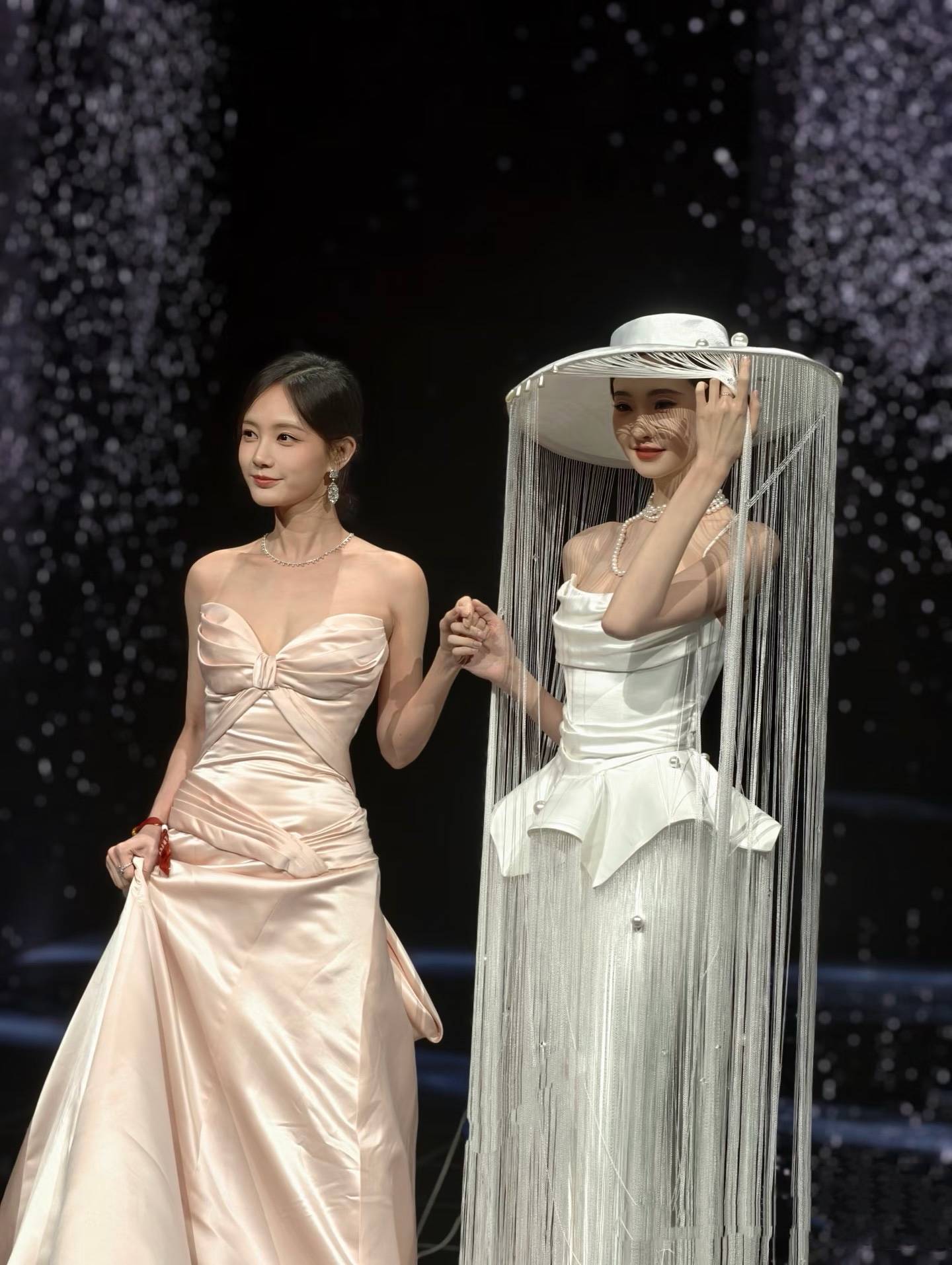 李一桐和张艺凡牵手上台的时候,真是惊艳到我了。如果说李一桐造型简单,那么张艺凡这流苏斗笠简直就是华美。