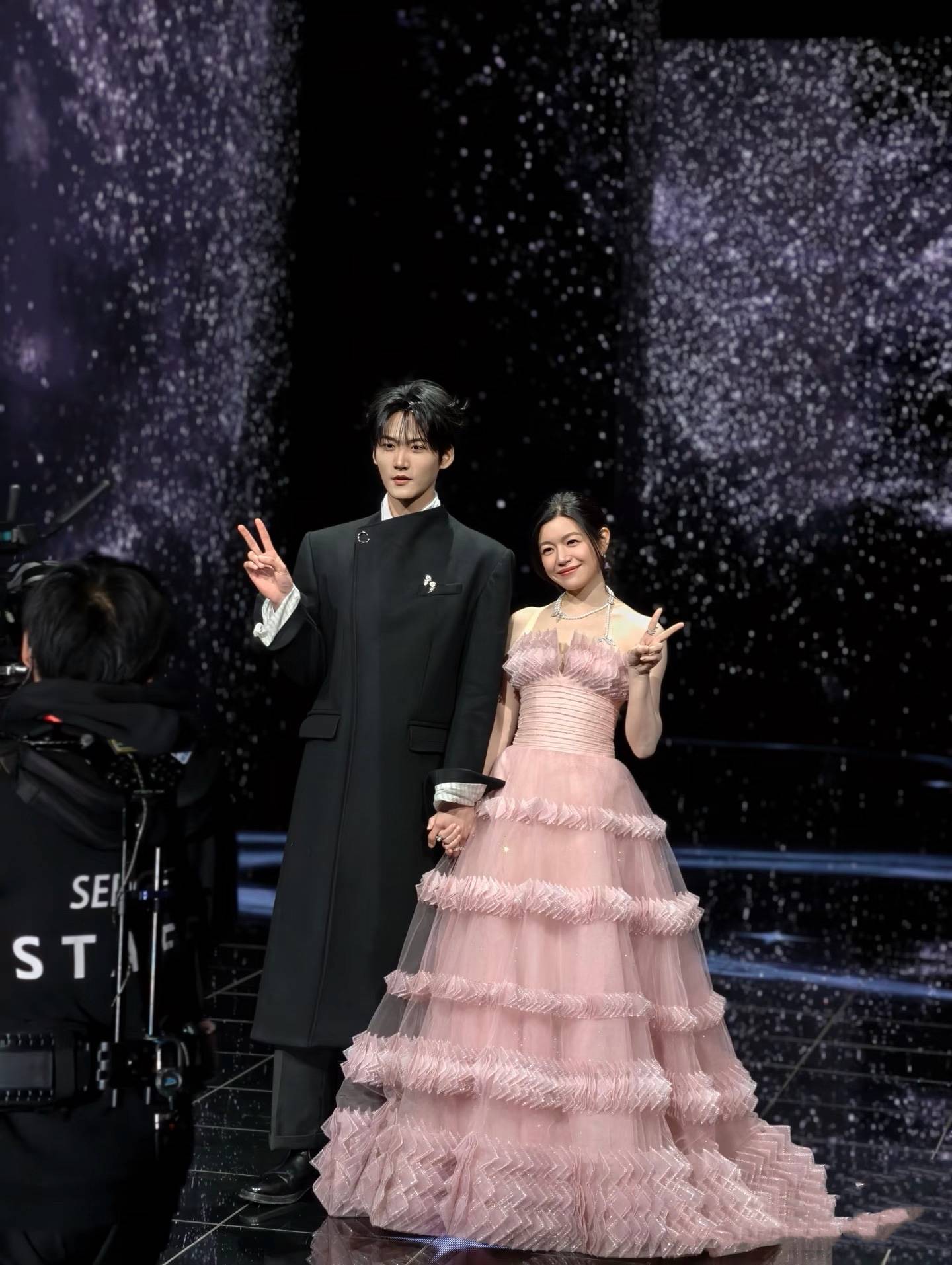 周柯宇的穿搭相对潮流,冷脸酷酷的、两个人站在一起真是般配。尤其是二人走红毯的时候,双手是紧紧牵着的。