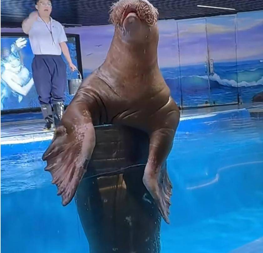 要说水族馆的 “气氛担当”,还得是会自我陶醉的海狮。筱梅凑过去摸它的脑袋时,这只聪明的海狮突然做起了仰卧起坐,胖乎乎的身子一拱一拱的,做完还不忘给自己鼓掌,那傲娇的小模样,把筱梅逗得直笑。