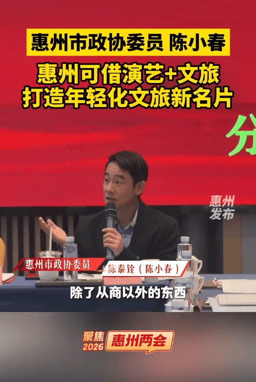 近日,惠州市政协委员陈泰铨(陈小春)在分组讨论上建议惠州将演艺与文旅深度融合,举办音乐节、演唱会,吸引更多年轻人来惠州打卡,通过“演艺+文旅”的融合模式,吸引更多的人来惠州、推广惠州。