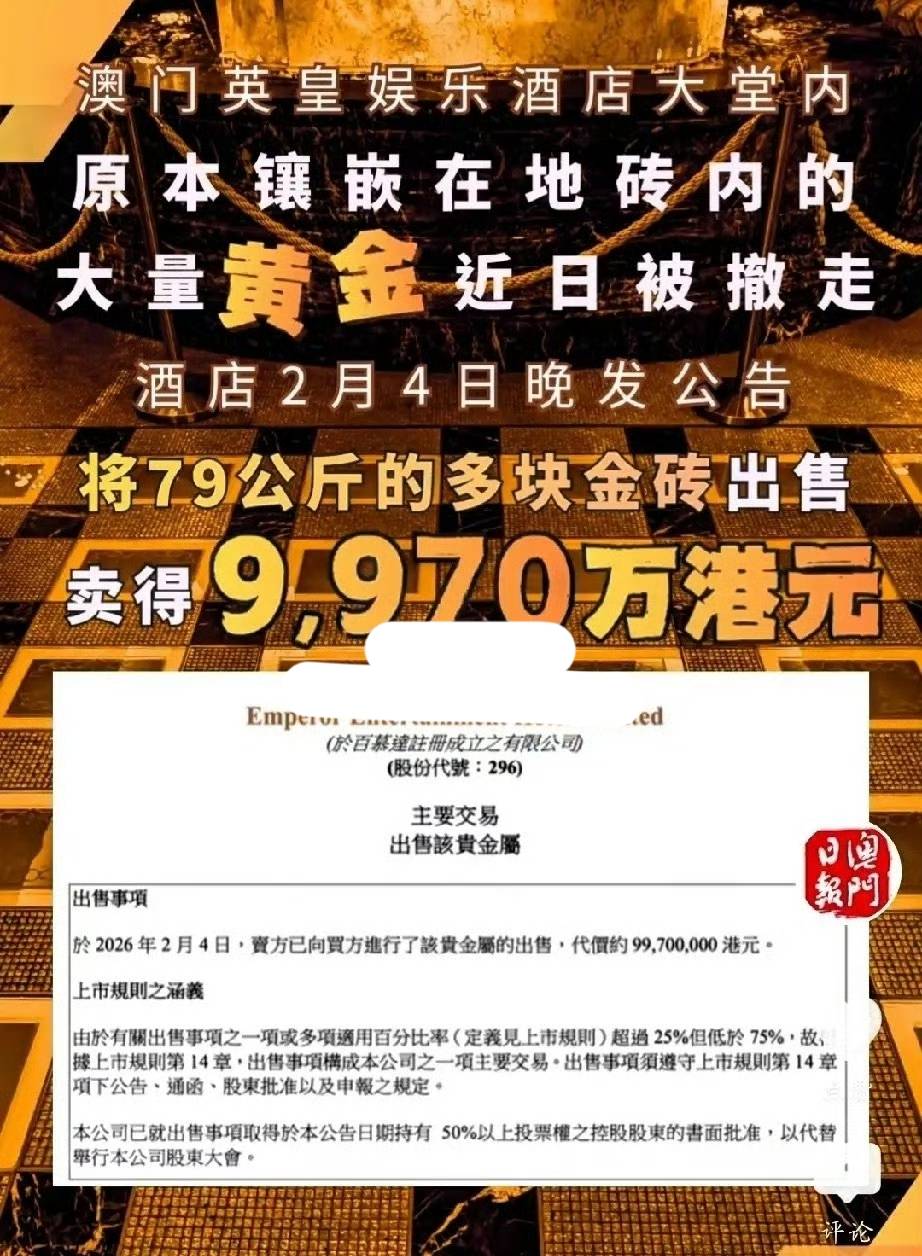 这不,总被外界传欠债的英皇杨受成杨老板 ——明星谢霆锋幕后的老大,指使工人,把自家集团旗下投资的酒店——澳门英皇娱乐酒店,大厅里金子铺成的路面里的长条金砖给撬开了。