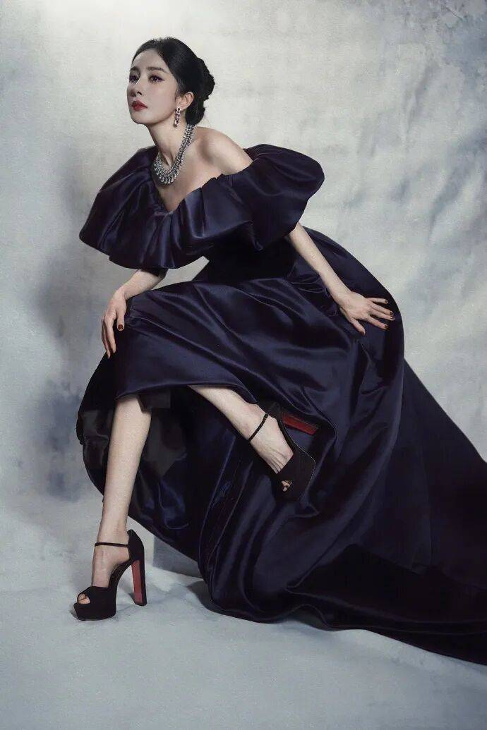 陈都灵身穿黑紫配色无袖衣裙,被赞为"暗夜玫瑰"!