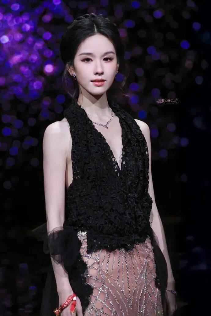 张天爱身着黑色闪钻礼裙完成红毯环节,气场全开被赞"暗夜女王"。