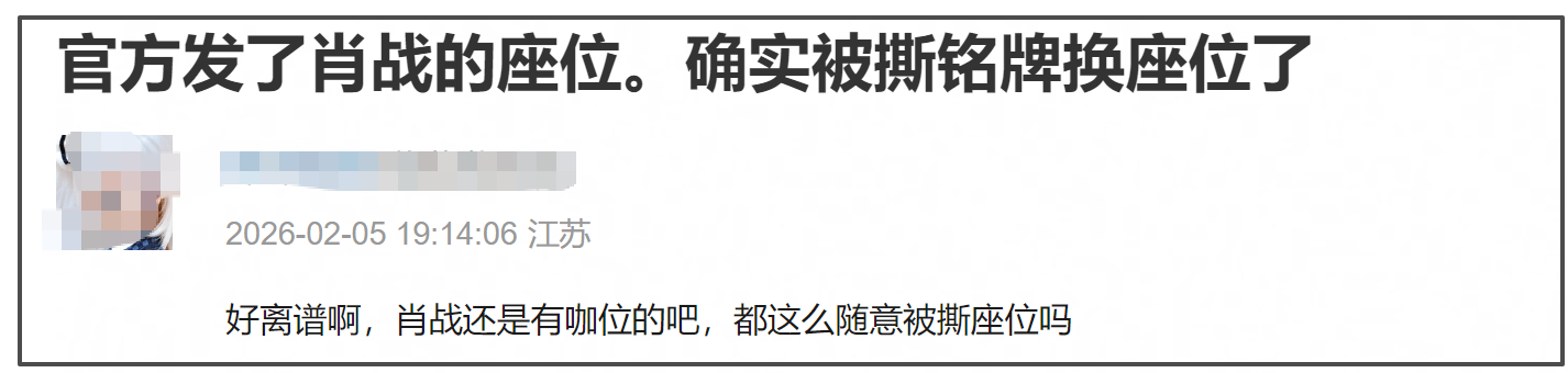 随后,官方晒出的位置照片,也坐实了一开始肖战的座位确实跟辛芷蕾一个椅子上。