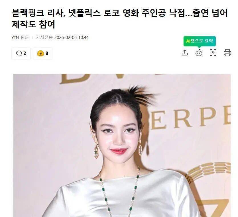 据韩国媒体2月6日最新报道,全球顶级女团BLACKPINK成员LISA的职业生涯,正迎来一个全新的“主演”时刻。近日,据美国权威影视媒体《Deadline》报道,LISA已确定将出演Netflix原创浪漫喜剧电影,并首次担纲女主角。更引人注目的是,她还将通过个人厂牌LLOUD Co.深度参与,挂名总制片人之一。这标志着这位国际巨星的影响力,正从舞台中央强势延伸至影视内容创作的核心地带。