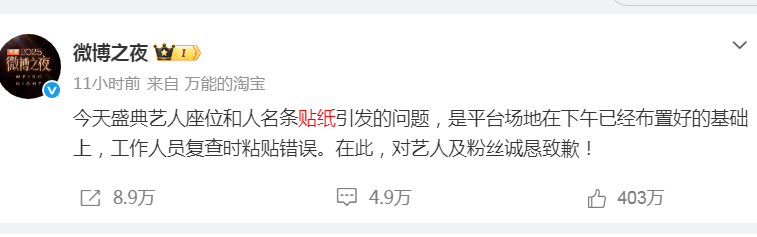 随后,微博也发文了,说是工作人员复查时弄错了,但这个说法真的很难站的住脚,毕竟谁都知道,这个咖位的事情,每年都要出点事情,是所有检查项目里最重中之重的,真要是弄错了,负责的人,可以全都辞退了