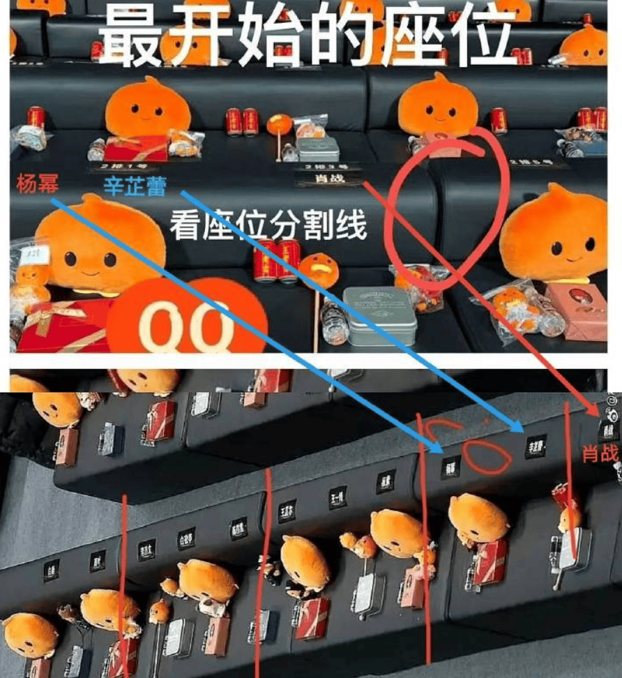 我觉得看这张最初的图就知道事情的大概了,就是贴的时候,就把杨幂和辛芷蕾贴一起了,肖战给贴到旁边的沙发上了