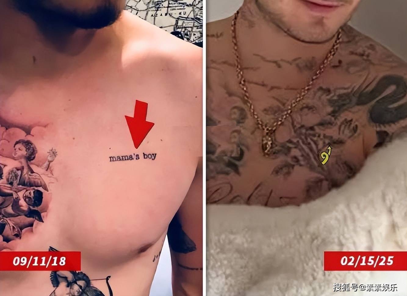 (大布)布鲁克林正式与父母断绝关系!布鲁克林抹除掉了身上最重要的“Dad”纹身,用3个新图案覆盖。