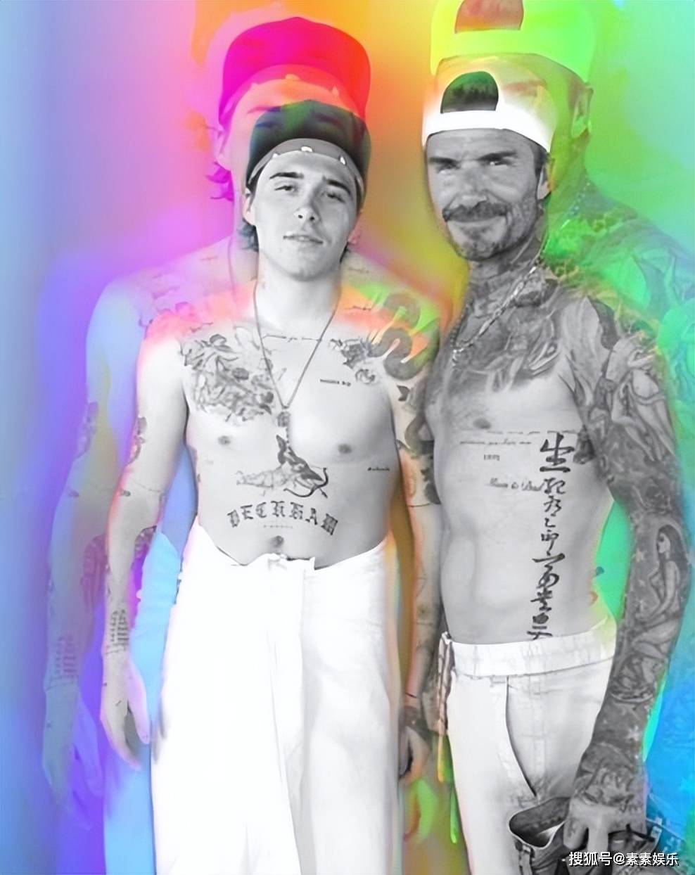 虽然大布把父母的纹身给抹掉了,但贝克汉姆纹在脖子上的 “Buster” 纹身仍旧在线,毕竟是自己的孩子,父亲不可能跟他一般计较。