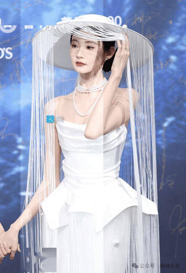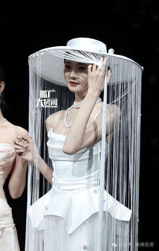 长筒流苏帽,走起来摆动,静下来揭面又若隐若现,还自带光影。配上珍珠项链和抹胸裙,一切都恰到好处。