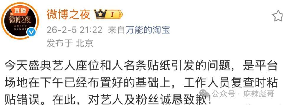 一个半小时后,微博之夜发博道歉。