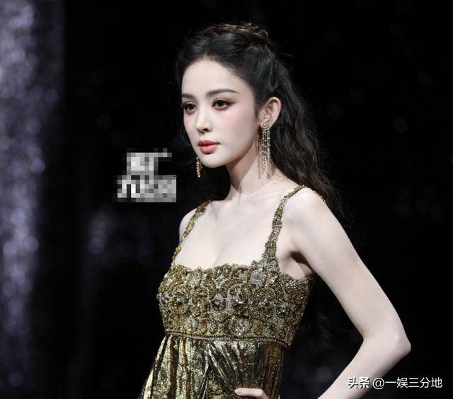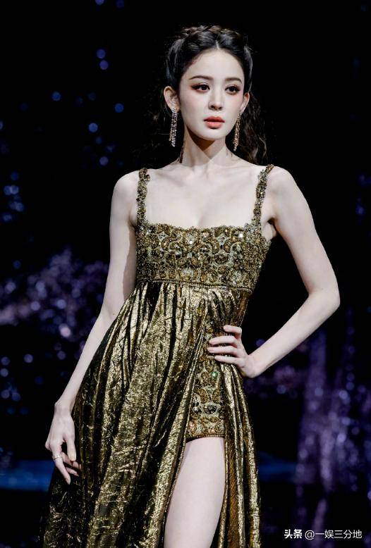 这次的金色吊带裙也是大秀身材,美得很有神女的感觉。