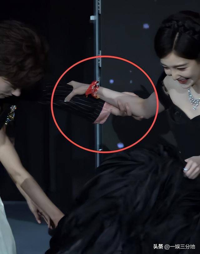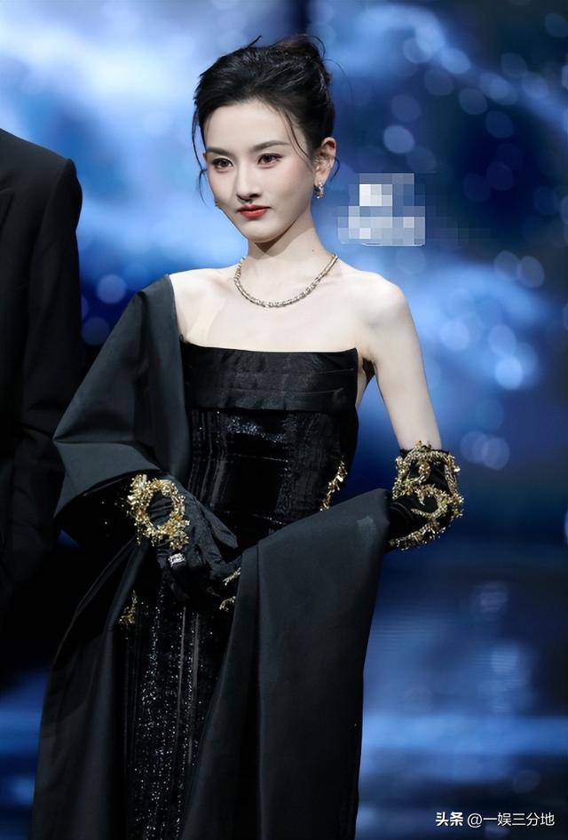 童瑶红黑相见的抹胸裙,加上廉价的裙摆质感,一下子显得年龄都老了10岁。