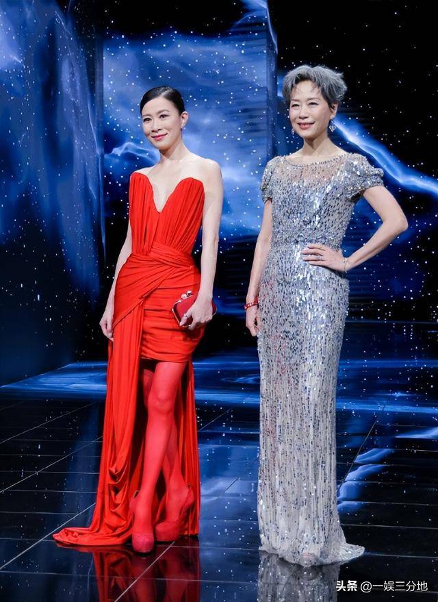佘诗曼的裙子倒是布料柔软了,但红色也实在是太考验人了。