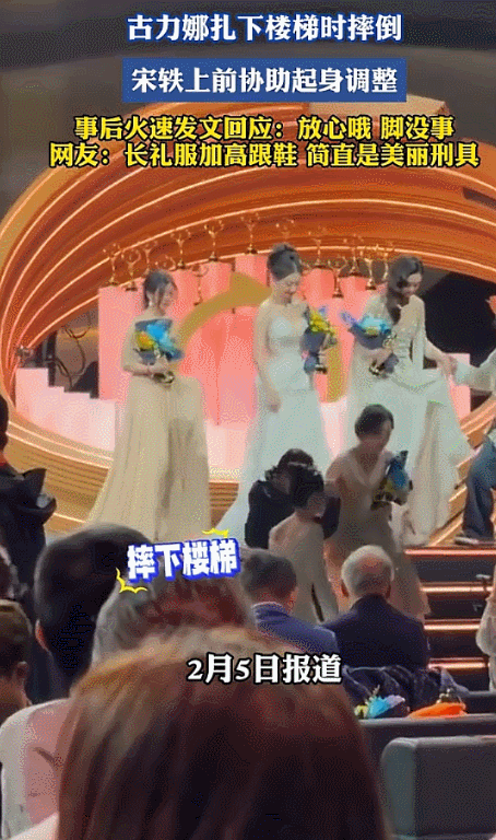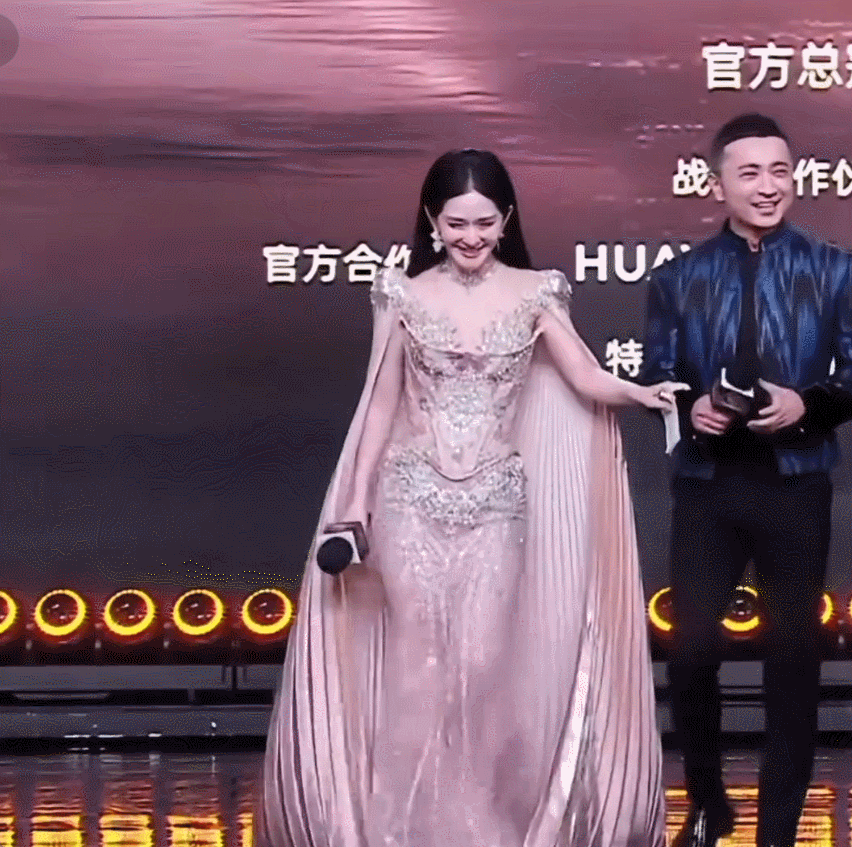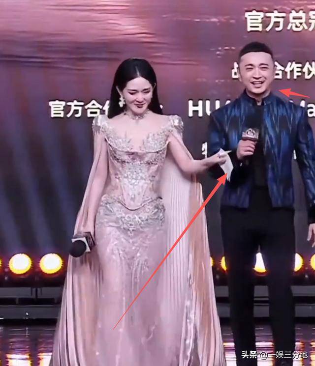 服装笨重的杨紫领完奖下台时,就比较幸运了,不仅有尼格买提的帮忙,台下还有人接着。