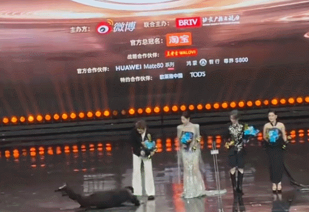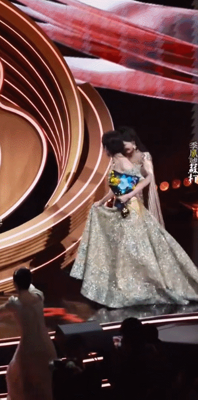 领完奖下台时,直接摔倒在台阶上,隔着屏幕都觉得挺疼的,而整个人还有点纸片的既视感。