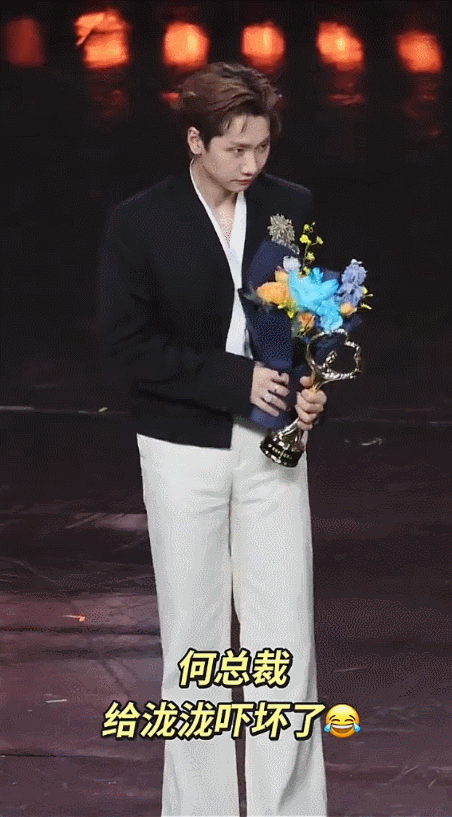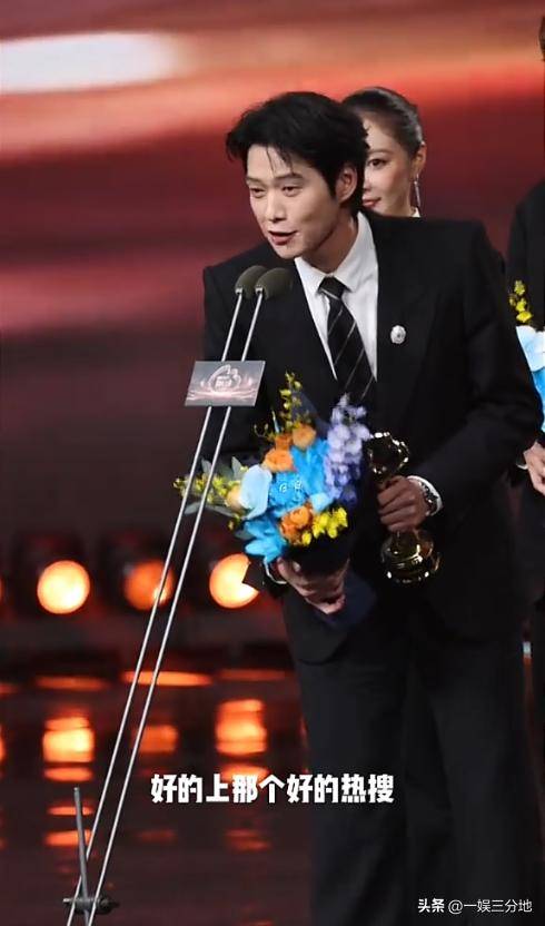 在台上讲话时,手抖的花瓣都要掉下来了、奖杯也是岌岌可危中,嘴上还强撑的表示,今年努力,一定会上点好的热搜。
