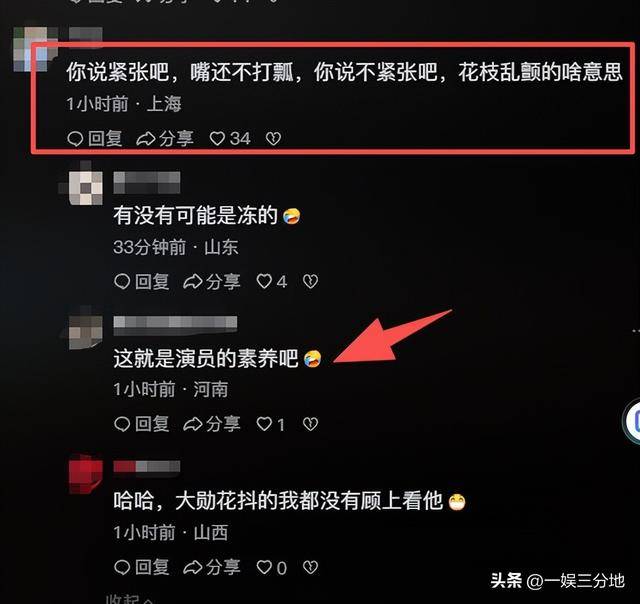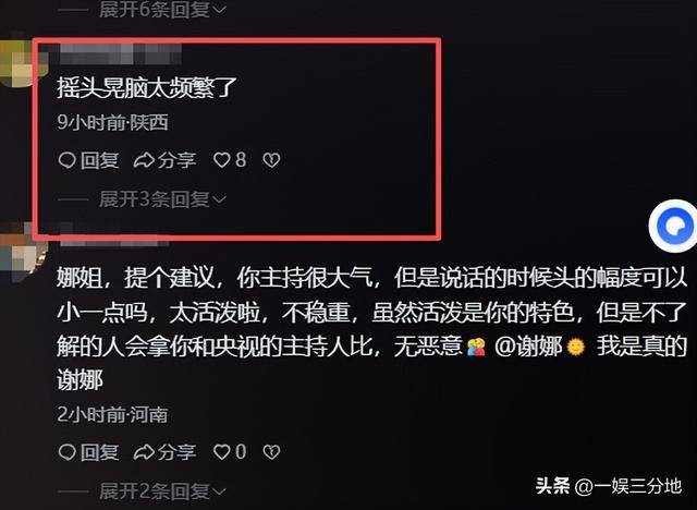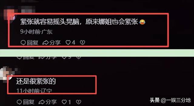 她心中的紧张,被网友看出来了,被吐槽道,紧张到极限,就要摇头晃脑。