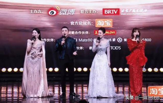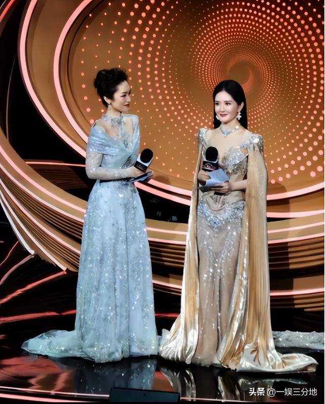 在主持人同框下,能看到谢娜的衣服,最为浮夸了,不仅是镂空且修身的设计,还有长长的拖地披肩,委实笨重。