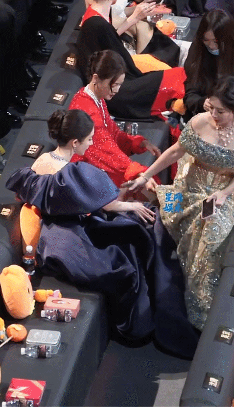 由于裙子笨重,回位置时,走路不稳,想让杨幂扶她时,不仅遭到了拒绝,还被推了一下,多少有些尴尬了。