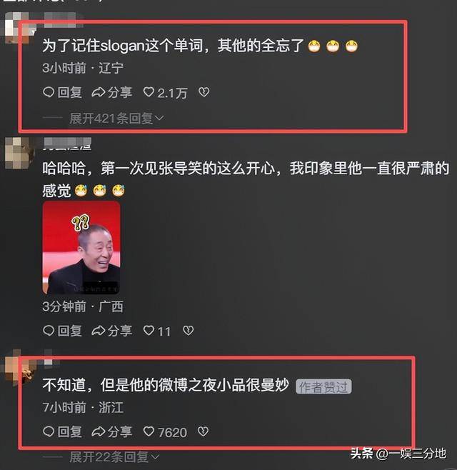 网友调侃道,很少见张艺谋能笑得如此开心。