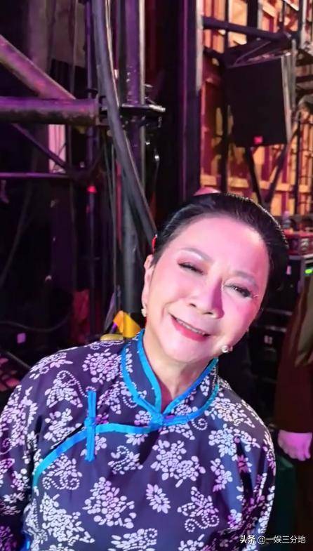 视频中,大家应该是聚集在台上彩排着节目,倪萍来到台上和大家打招呼。