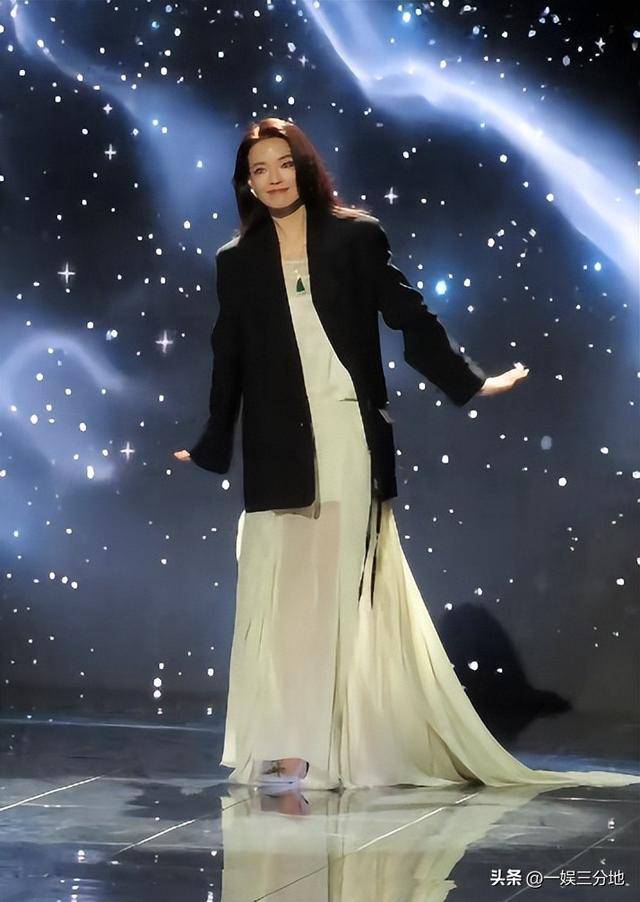 舒淇这次也是一改往日性感女郎的风格,穿的严严实实的,只有下面的裙子有点微透。