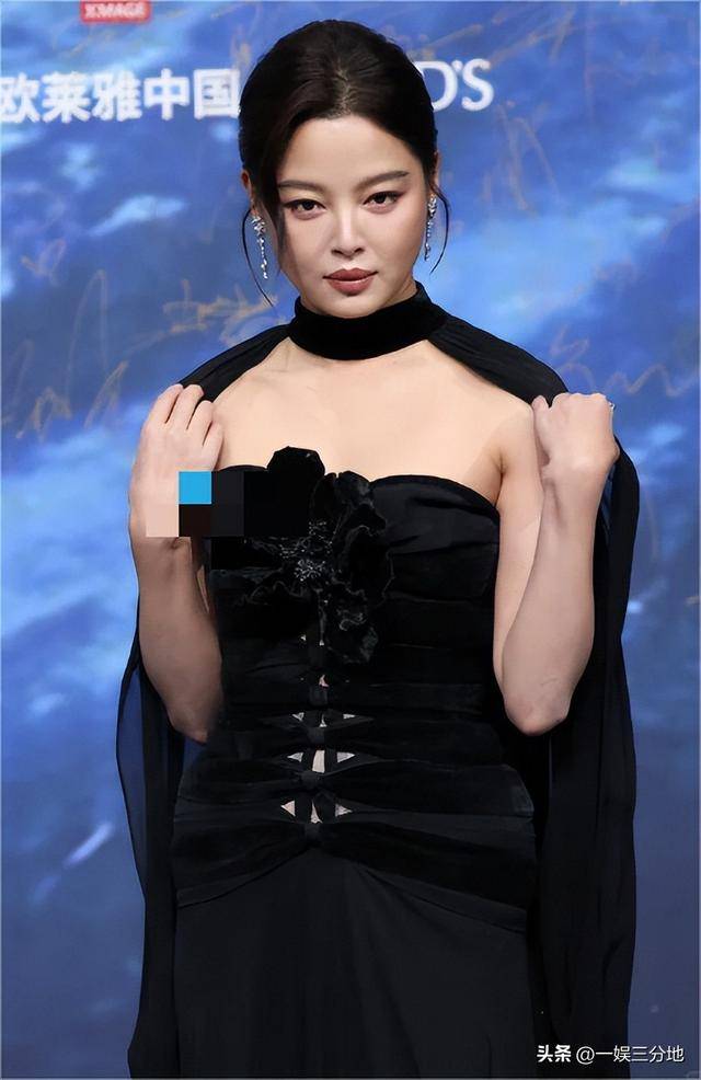 穿着露肩长裙,脖子上披着一个黑色的纱,不得不说辛芷蕾的脸太有辨识度了。