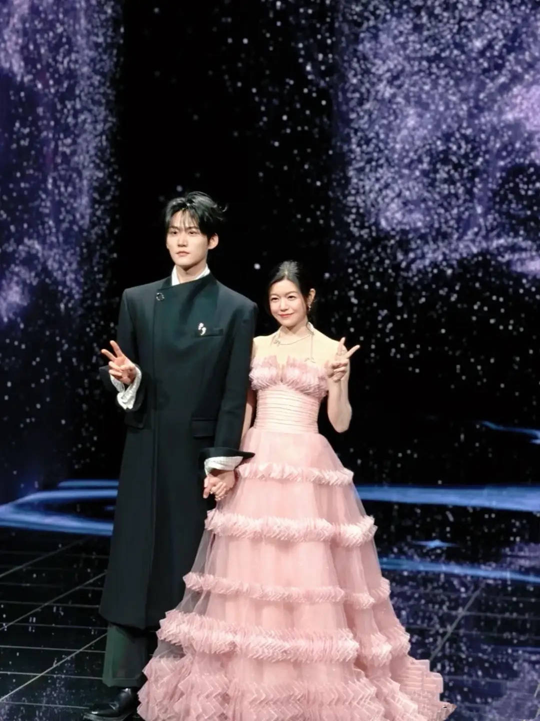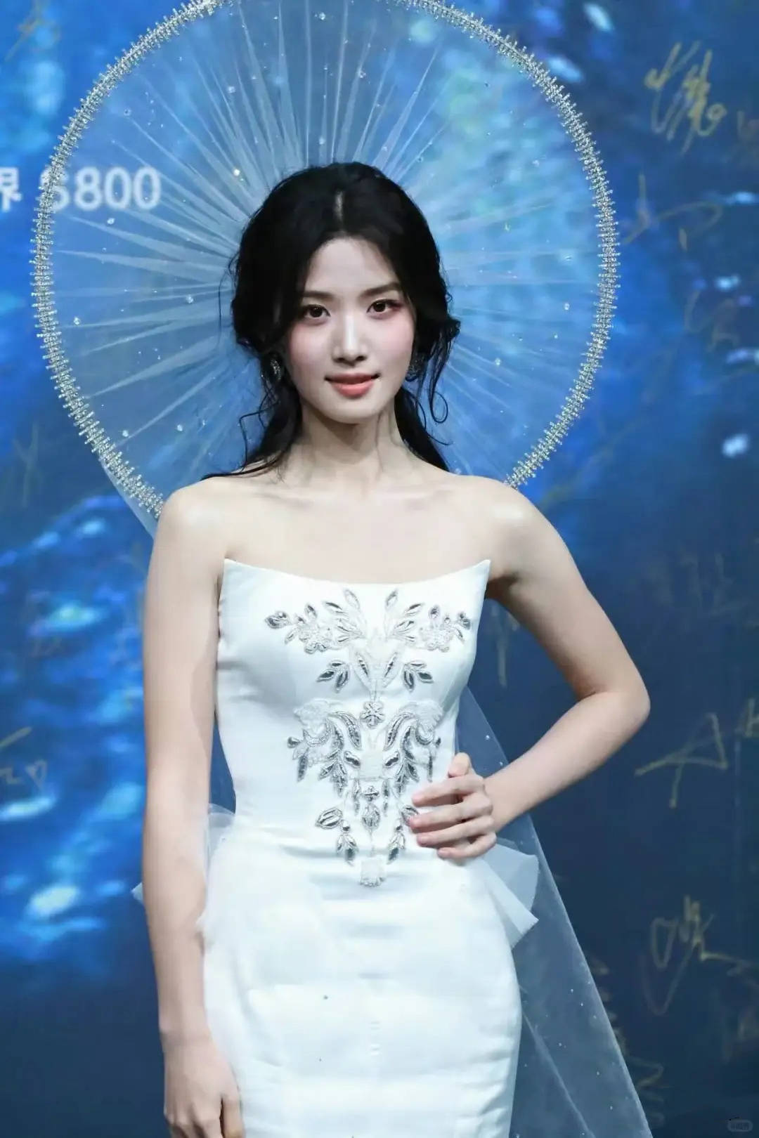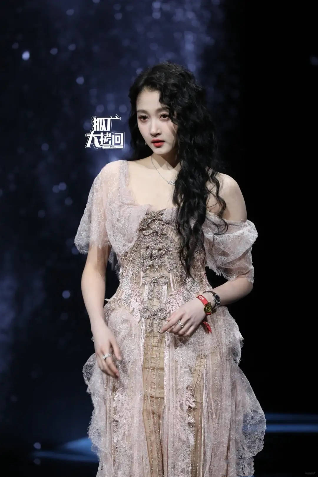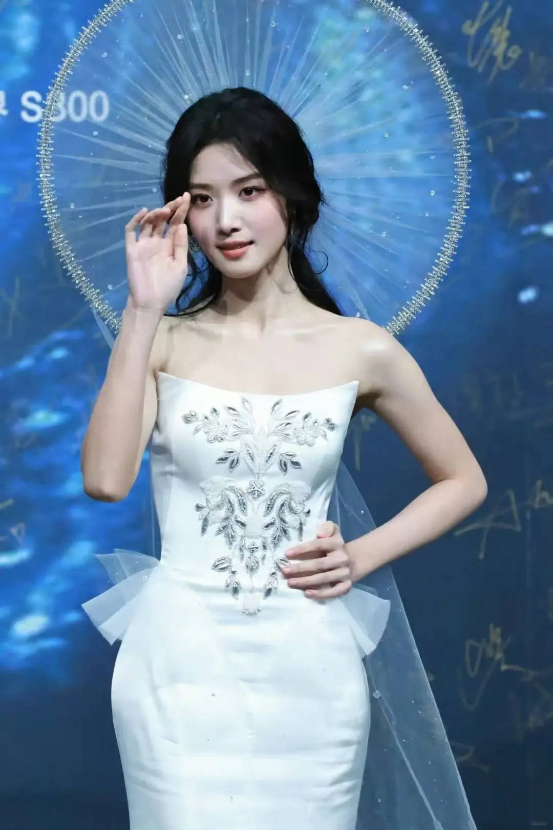卢昱晓穿着高定款的礼服,却被吐槽像是背了一个电风扇。桂由美的设计理念是水晶披纱在灯光下如星河流动,没想到成了累赘。