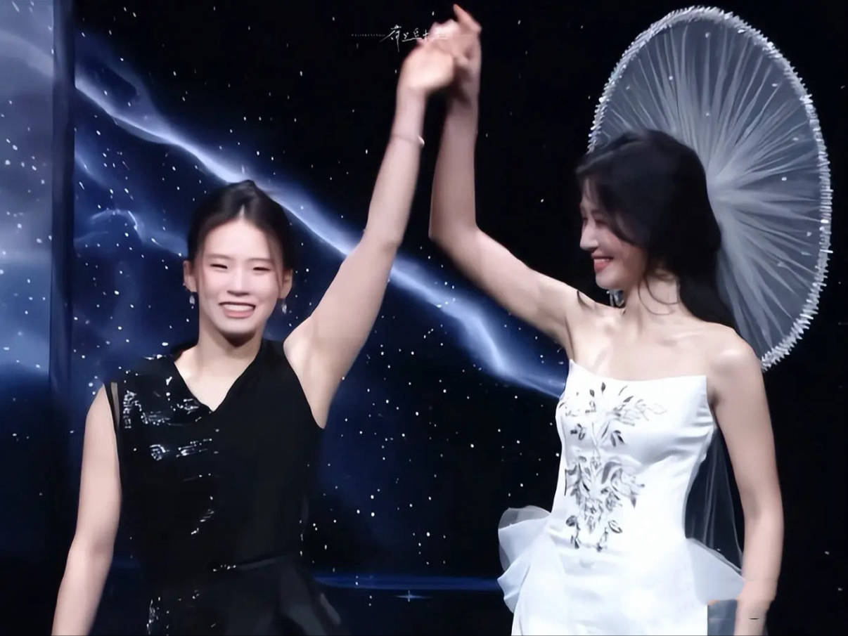 和陈芋汐的互动,两人身高差、体型差别都很大。没想到陈芋汐的手臂那么结实,运动员的身材就是很有力量。