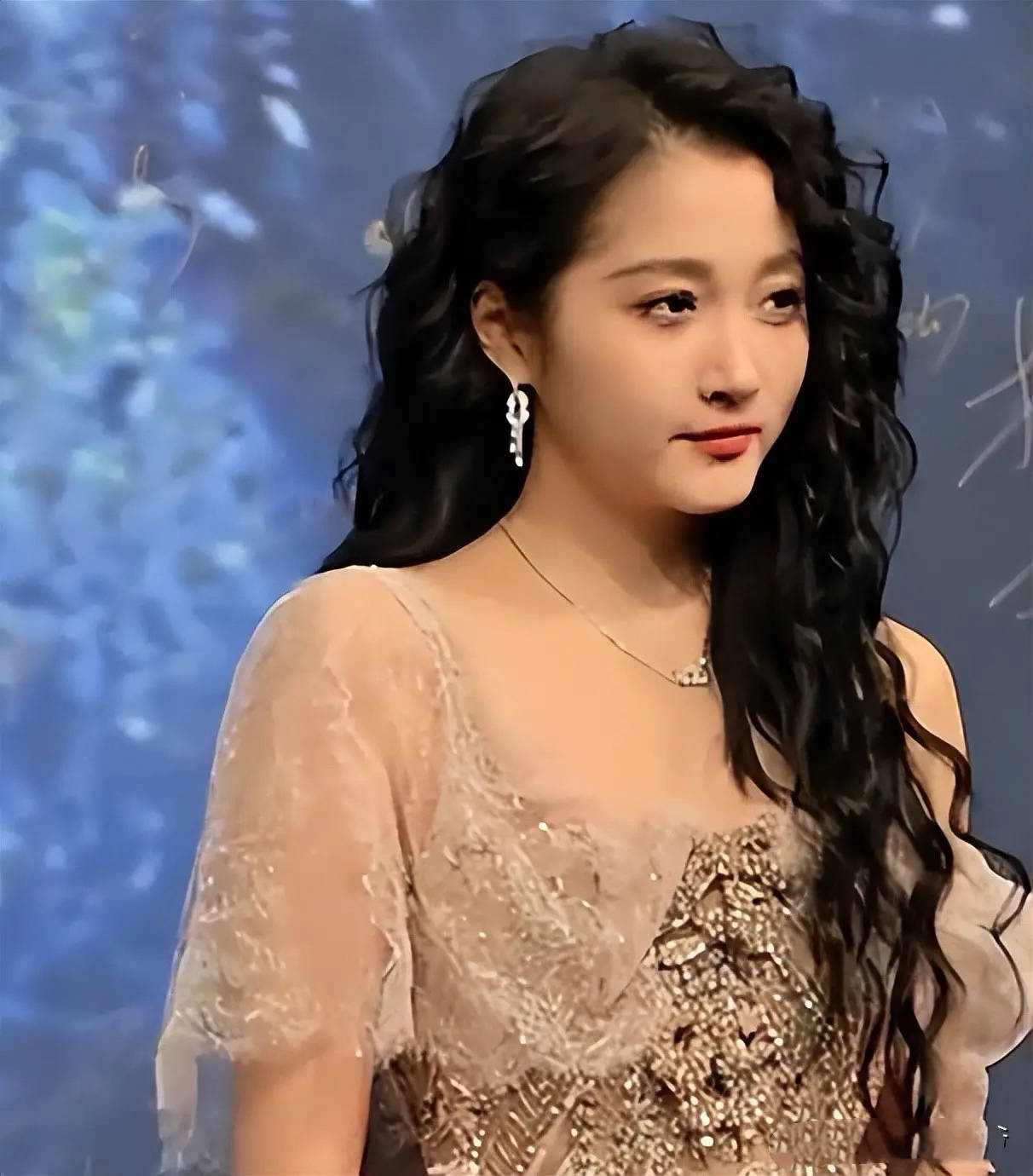 她作为童星出道,这些年作品不断,这次罕见的尝试贵气造型,不仅显老、还有一种脸垮的迹象。