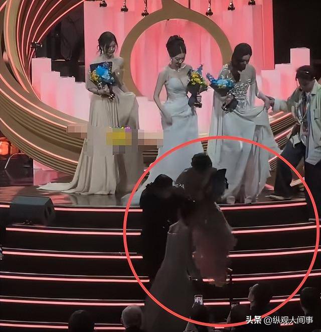 好在娜扎全程十分谨慎,下台时虽有轻微趔趄,但并未摔倒,工作人员及时上前搀扶,宋轶也在旁帮忙整理裙摆防止走光,景甜也凑过来递水,场面倒还算暖心。
