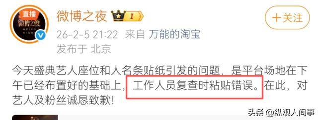 可主办方直到晚上 9 点 22 分才慢悠悠发了致歉声明,把锅甩给 "工作人员复查时粘贴错误",轻描淡写一句 "对艺人及粉丝诚恳致歉" 就想完事。