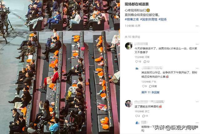 最后第二到第四排的核心区域空了大半,镜头扫过去全是空荡荡的沙发,跟前排资本方满座的场景形成鲜明对比,现场观众的不满彻底爆发,"退票" 的呼声此起彼伏。