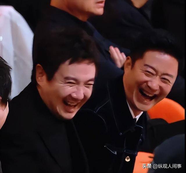 闹剧里也不是没有暖心或搞笑的片段,比如黄渤、沈腾、吴京三位影帝,内场间隙凑在一起热聊。