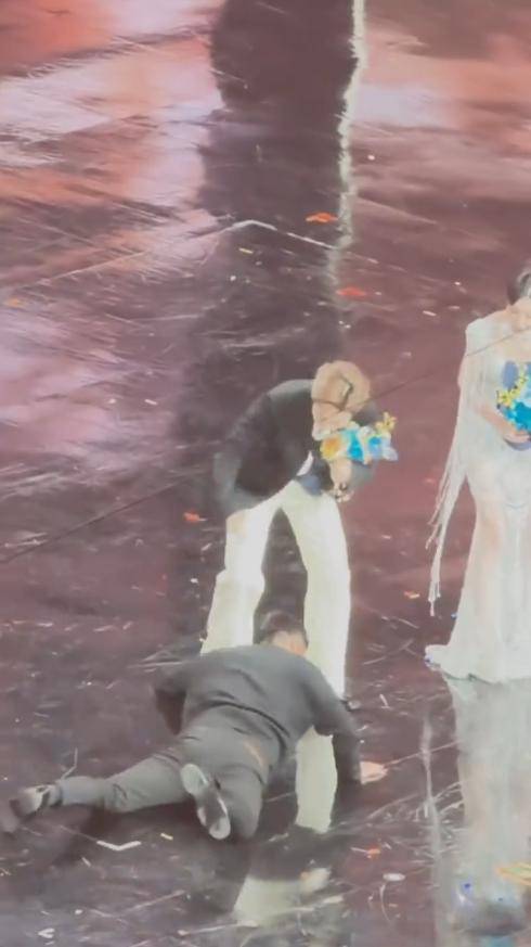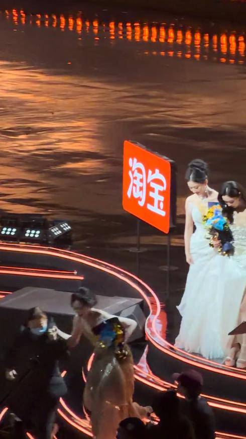 可就在领取年度突破演员奖项后,她下台时没注意裙摆,一脚踩上去直接摔倒在地,现场惊呼一片。