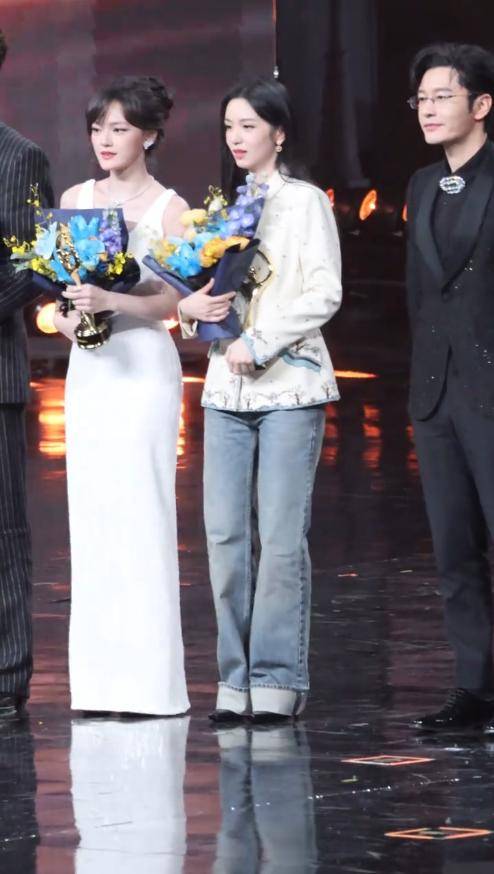 周也上台领奖时,直接打破了红毯盛典的穿搭惯例。她没穿女星们常穿的礼服裙,反倒穿了一身利落的裤子,搭配简约上衣。