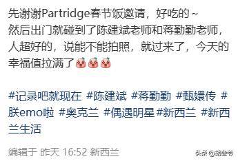 2月5日,蒋勤勤和陈建斌现身奥克兰度假,没想到在异国他乡比较小众的餐馆里,居然还被粉丝认了出来并拍了合影。