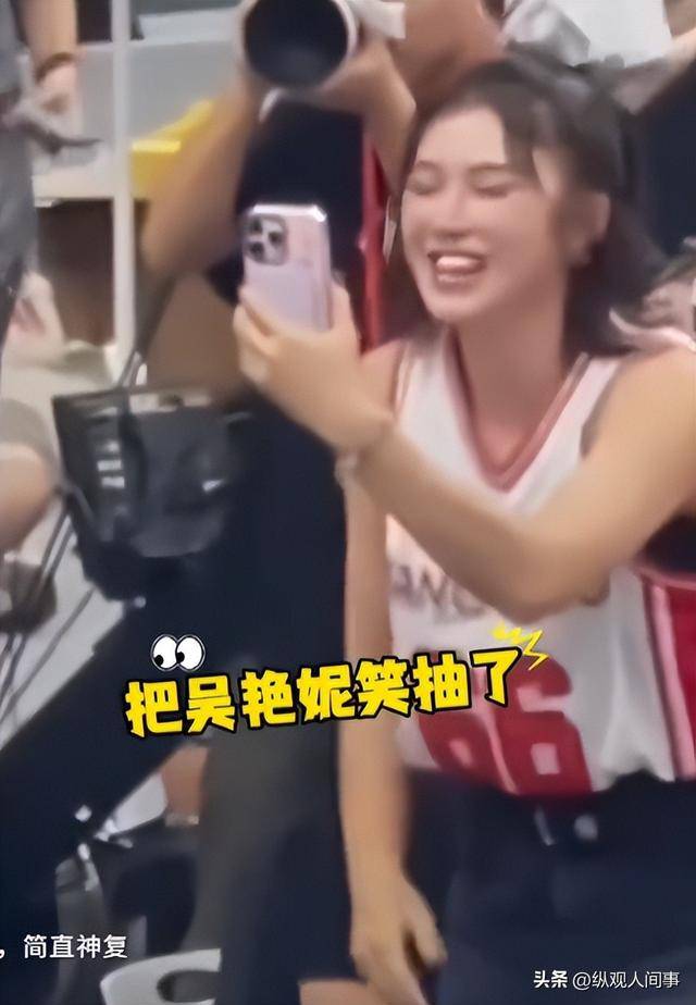 结果看到田径名将吴艳妮以啦啦队队长身份热舞登场,直接从替补席窜到球场边,在起跑线前摆起了吴艳妮标志性的 “单手指天” 起跑姿势 ——