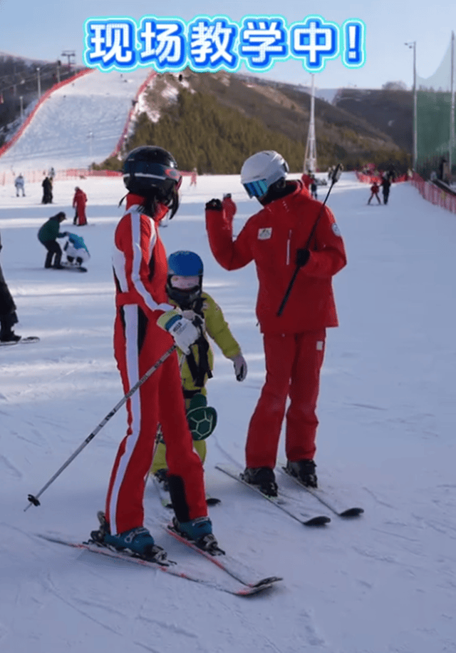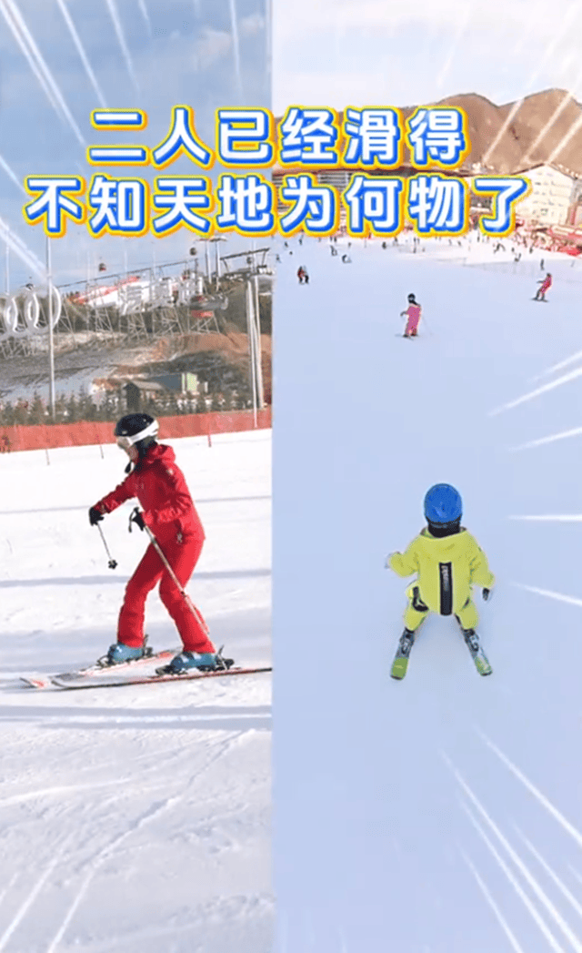 和女儿都是滑雪新手的颖儿,她还给母女俩请了专业的教练,在教练的带领下,颖儿和月亮学的都很认真,很快就上了雪道,作为新手,母女俩并没有摔倒,滑的还是很不错的。