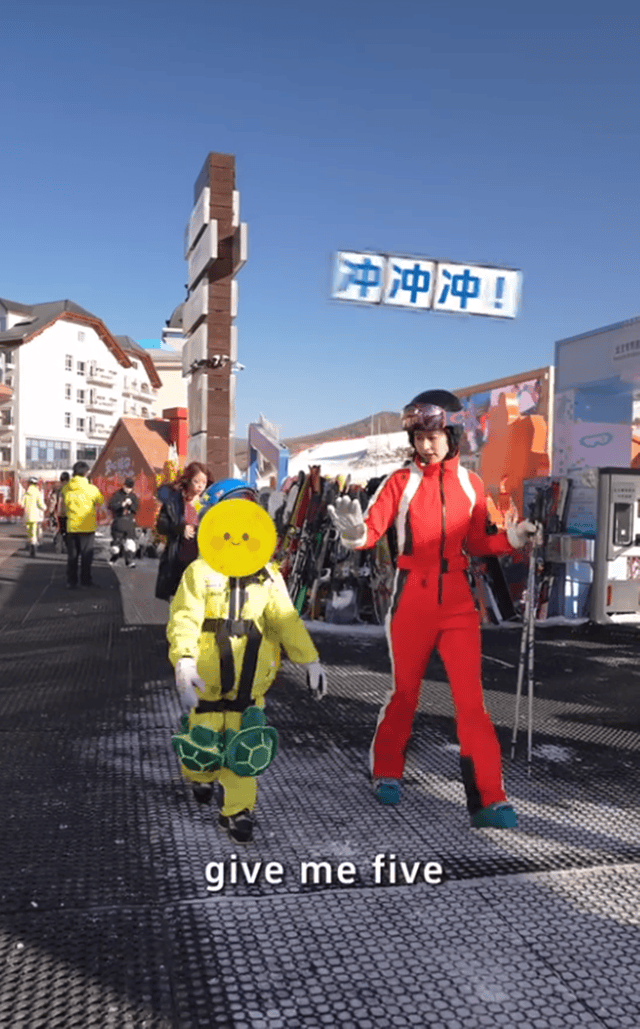 办理完入住的颖儿,和女儿换上滑雪服来到雪场。只见颖儿身穿一套鲜艳的红色连体滑雪服,两侧有白色的拼接条纹设计,既时尚又保暖。身材苗条的颖儿即使在厚重的滑雪服包裹下,依然能看出她的双腿笔直修长,手臂线条也很纤细,头身比和腿身比都很好,展现出一种轻盈的体态。