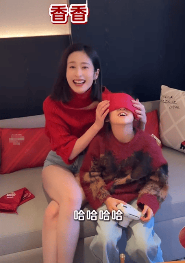 值得一提的是,颖儿还换上了和女儿一样的大红色毛衣,穿着喜庆的母女俩,满满春节氛围感。