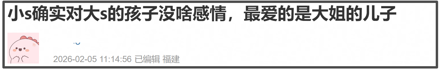 此外,在某次采访中,小S被问到“一觉醒来魂穿大S最想做的一件事”,明明是一个用不痛不痒的回答就能解决的问题,她却借这个机会又开始吐槽大S的子女,表示自己会立刻把大S的两个小孩叫起床,然后把所有的人生大道理讲给他们听。