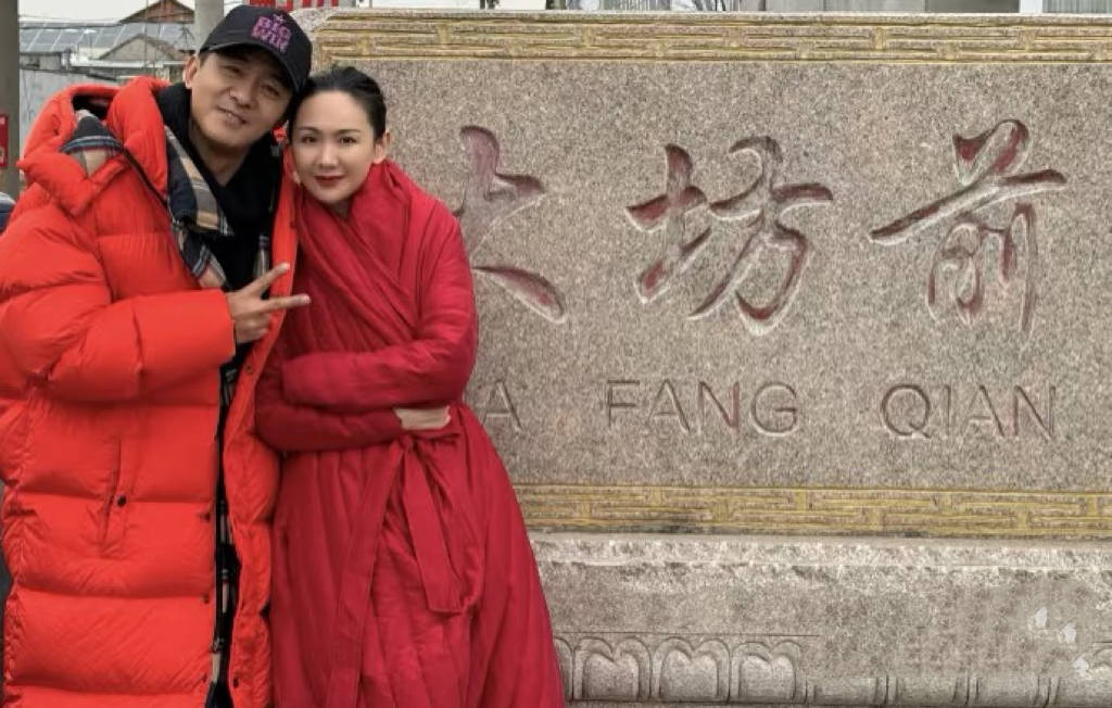 带着漂亮的老婆回村里,郭晓东脸上也是风光无限。他们在村口拍照,背景里是一栋栋乡村平房,还有光秃秃的枝丫。